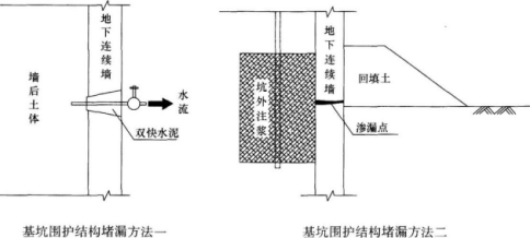 解析 1.A工字钢;B围檩。 (1)工字钢的功用:作为SMW工法桩加筋用,它与水泥土搅拌墙结合,形成一种复合劲性围护结构,可以极大地提高水泥土搅拌墙的强度,增加SMW桩的抗弯和抗压强度;且工字钢可以拔出重新利用,有利于节省钢材、节约成本。 (2)围檩的功用:与围护桩(墙)、支撑一起构成支撑结构体系,承受围护墙所传递的土压力和水压力,传递给钢支撑。 本小题是道简答题,涉及的考点是深基坑支护结构与变形控制。回答这类问题,需要有识图能力,和亲眼见过用SMW工法桩做围护结构的深基坑施工过程。考生平时应注意加强这方面的实践。 2. (1)钢筋混凝土支撑的特点是:混凝土结硬后刚度大,变形小,强度的安全可靠性强,施工方便,但支撑浇制和养护时间长,围护结构处于无支撑的暴露状态的时间长、软土中被动区土体位移大,如对控制变形有较高要求时,需对被动区软土加固。施工工期长,拆除困难,爆破拆除对周围环境有影响。随着基坑开挖深度增大,基坑上部周围土体的主动土压力越来越大,采用钢筋混凝土支撑作深基坑的第一道支撑,与SMW工法桩连接,可以有效抵抗基坑上部土体的主动土压力,正好利用了其“刚度大,变形小,强度的安全可靠性强,施工方便”的优点,避开了其“施工时间长,围护结构处于无支撑的暴露状态的时间长,软土中被动区土体位移大”的缺点。 (2)钢管支撑的特点是,安装、拆除方便,可周转使用,支撑中可加预应力,可调整轴力而有效控制围护墙变形;施工工艺要求较高,如节点和支撑结构处理不当,或施工支撑不及时不准确,会造成失稳。由于基坑开挖后,基坑中下部周围土体的主动土压力相对较小,但要求支撑及时,所以采用钢管支撑可以较快地构筑围护支撑结构,较好地保持基坑稳定,保证施工安全。 本小题是道简答题,涉及的考点是深基坑两类内支撑体系的形式和特点。深基坑开挖是从施工第一道支撑开始的。这时只要按图纸要求将钢筋混凝土支撑的大样放在已整平的地面上,然后挖出浇筑钢筋混凝土支撑所需的立模空间,立模、绑扎钢筋、浇筑混凝土、养护到设计强度后,就可以开挖深基坑了。当挖到第二道支撑的设计标高时,就应施工第二道支撑。这时,从第一道支撑到第二支撑之间已经没有土了,作用在围护结构上的主动土压力失去了平衡力,急需用内支撑来平衡,所以应快速施工内支撑。这时如果还是采用现浇钢筋混凝土支撑,由于其施工时间长,围护结构处于无支撑的暴露状态的时间长,软土中被动区土体位移大,有极大的可能在现浇钢筋混凝土支撑施工期间,发生基坑坍塌事故。这时就应该用钢管支撑体系,它的施工时间只有现浇钢筋混凝土支撑施工时间的几十分之一。 3. 本项目的管井属于疏干井,其作用是疏干潜水,便于基坑开挖;同时有利于保护周边的地下管线。 本小题是道分析判断题,涉及的考点是工程降水方法。回答本题需要依据考试用书中的相关论述,结合背景资料中给出的地质和水文信息,加以分析判断后做出简明扼要的回答。背景资料中给出的信息是:基坑场地地层自上而下依次为:2.Om厚素填土、6m厚黏质粉土、8m厚砂质粉土。地下水位埋深约1.5m。基坑开挖深度8.5m。基坑围护结构采用SMW工法桩。在基坑内布置了5口管井降水。这些信息告诉我们,本基坑的水属于潜水(背景资料中没有提到承压水),降水深度至少9m;SMW工法桩的水泥土搅拌墙就是隔水帷幕,穿过了8m厚砂质粉土层,隔断了基坑内外地下水的水力联系;管井布置在基坑内,埋深必定大于9m,降水时,基坑外地下水不受影响,因此避免了基坑外的土因水的流失而发生的变形,保护了周边的地下管线。 4. 堵漏措施的具体步骤为: (1)渗水较小时,在漏水处用排水管引流,用双快水泥封堵,待封堵见效后,关闭排水管道。 (2)如果渗流过大,就在漏水处回填土并在基坑外注浆封堵水流。堵漏完成后,再清除回填土。 本小题是道简答题,涉及的考点是防止基坑坍塌、掩埋的安全措施。在回答问题前,先要看清题意和背景资料中给定条件。背景资料中给出的信息是:在挖土过程中发现围护结构有两处出现渗漏现象,渗漏水为清水,项目部立即采取堵漏措施予以处理。这里“渗漏水为清水”是给定的条件,没有这一条,就不能采取参考答案中的堵漏措施。 围护结构渗漏是基坑施工中常见的多发事故。在富水的砂土或粉土地层中进行基坑开挖时,如果围护结构或止水帷幕存在缺陷,渗漏就会发生。如果渗漏水主要为清水,一般及时封堵不会造成太大的环境问题;而如果渗漏造成大量水土流失则会造成围护结构背后土体过大沉降,严重的会导致围护结构背后土体失去抗力造成基坑倾覆。 围护结构缺陷造成的渗漏一般采用下面方法处理:在缺陷处插入引流管引流,然后采用双快水泥封堵缺陷处,等封堵水泥形成一定强度后再关闭导流管。如果渗漏较为严重直接封堵困难时,则应首先在坑内回填土封堵水流,然后在坑外打孔灌注聚氨酯或双液浆等封堵渗漏处,封堵后再继续向下开挖基坑,具体见下面两图。 5. 索赔不能成立,因为基坑漏水是由于围护结构施工缺陷造成的,属于施工单位的原因,所以不能索赔。 本小题是道分析判断题,涉及的考点是施工合同索赔。工程索赔是在工程承包合同履行中,当事人一方由于另一方未履行合同所规定的义务或者出现了应当承担的风险而遭受损失时,向另一