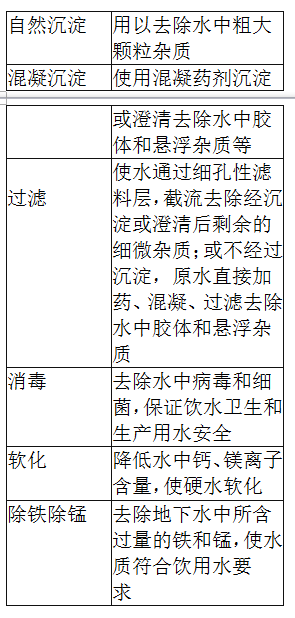 解析 常用的给水处理方法见下表: 常用给水处理方法一览 浓缩、厌氧消化是处置污水处理中所产生污泥的常用方法,其目的是防止其二次污染;处置污泥的其他常用方法还有脱水及热处理等。
