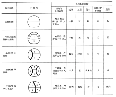 解析 喷锚暗挖(矿山)法开挖方式与选择条件表2K313031