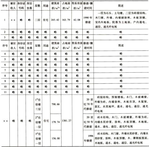 1.根据委托方的房地产评估委托书,本报告的估价结果将每户房屋和区域平均地价分开评估并单独列示。其中,房屋估价结果不包括简易房、围墙、院坝以及附属设施设备的价格,土地使用权估价结果为该征收区域的出让住宅用地使用权平均价格,并根据×县政府规定按出让住宅用地基准地价的20%扣除了国家收益。每户房屋占用范围内的土地使用权的补偿价格可根据本报告的“价格定义”结合具体的容积率和土地开发程度修正。