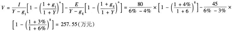 问题 某宗房地产的收益期限为8年,未来第一年的有效毛收入为80万元,运营费用为45万元,此后每年的有效毛收入和运营费用在上年基础上分别递增4%和3%,该房地产的报酬率为6%。该房地产的收益价格为()万元。