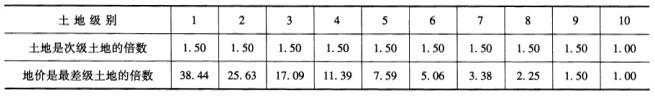 从2007年1月1日至2007年6月30日,该写字楼的市场价格基本不变,以后每月均递减1%。(2)当地征收农地的费用等资料如下:价值时点征收城市边缘土地每亩需要支付70万元的征地补偿和安置等费用,向政府交付土地使用权出让金为200元/m2,土地开发的费用、税金和利润等为180元/m2,可视为城市边缘熟地的价格。该城市土地分为10个级别,城市边缘熟地列为最差级,而估价对象房地产处于第七级土地上。各级土地之间的价格差异见下表。