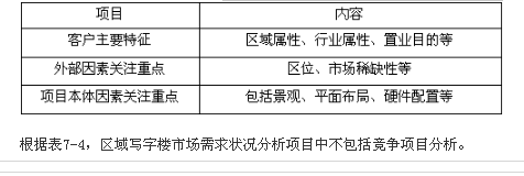 下列各项,不属于区域写字楼市场需求状况分析项目的是(  )。A、客户主要特征 B、竞争项目分析 C、外部因素关注重点 D、项目本体因素关注重点