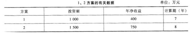 问题 共用题干 某投资项目有1、2两个互斥方案可供选择,各方案的有关数据见表,假设基准收益率为12%。