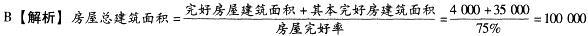 解析 (平方米),严重损坏房建筑面积=房屋总建筑面积-完好房建筑面积-基本完好房建筑面积-一般损坏房建筑面积-危险房建筑面积=100 000 - 40 000 - 35 000- 10 000 - 5 000 = 10 000 (平方米)。