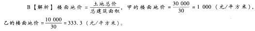甲、乙两个小区,甲区土地总价为30000万元,乙区土地总价为10000万元,二者总建筑面积均为30万平方米,甲容积率为7,乙容积率为3,二者建筑造价均为1...