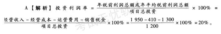 某开发项目的总投资为1 200万元,其年销售收入为1 950万元,年销售税及附加为410万元,年总成本费用为1 300万元,则该项目的投资利润率为( )。...