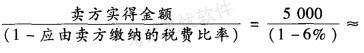 解析 由于营业税和契税等税费均由买方承担,所以卖方得到的实际价格为5 000元/平方米。根据正常成交价格=5 319. 15 (元/平方米)。