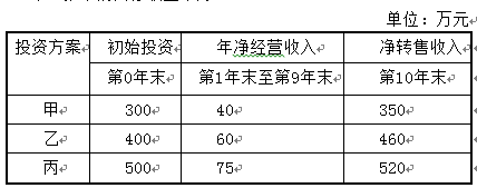 问题 张某完全靠500万元的自有资金进行房地产置业投资。经市场调研,有甲、乙、丙三个投资方案可供选择。各方案的初始投资、年净经营收入和净转售收入见下表,计算期均为10年。张某的目标收益率为10%。 用净现值率法进行方案比较,甲、乙、丙三个投资方案从优到劣的排列顺序为()。