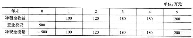 共用题干 某投资者购买了一商铺用于出租经营,其置业投资和前5年的净租金收益见下表。银行贷款年利率为7%,国库券年利率为5%,投资者目标收益率为10%。根...