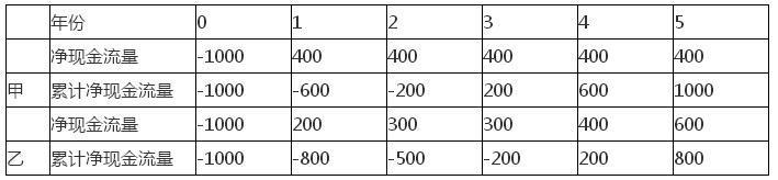 根据下面材料,回答93-96题。 某地块有两个投资方案甲、乙,甲可建宾馆,乙可以建餐厅,两个方案5年的净现金流量如表所示。折现率为10%。 单位。万...