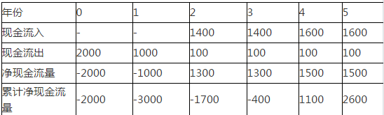 解析 本题考查投资回收期的计算。首先计算出净现金流量和累计净现金流量。 单位:万元 静态投资回收期=4-1+400/1500=3.27。