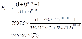 解析 已知月还款额A=7907.9(元),按月计算的贷款期限n=180(个月),按月计算的已偿还期m=5×12=60(个月)。则该家庭的贷款余额为: