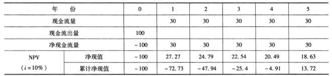 问题 购置某物业用于出租经营,购买价格为100万元,从购买后的下一年开始有租金收入,年净租金收入为30万元,现金收支均发生在年初,目标收益率为10%,则该项目的动态投资回收期()。