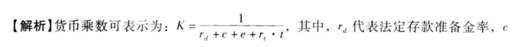 解析 代表现金漏损率,e代表超额准备金率,rt代表定期存款的存款准备金率,t代表定期存款占活期存款的比例。从货币乘数的公式中可以看出,商业银行创造存款货币的能力与法定存款准备金率、现金漏损率、超额准备金率、定期存款的存款准备金率成反向变动关系。C项,超额准备金与活期存款总额反向变化。