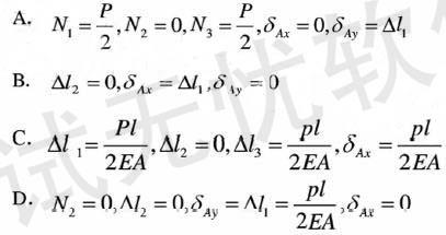 结构受力如图所示。若用N1,N2,N3和Δl1、Δl2、Δl3分别代表杆①、②、③的轴力和伸长,用δAx、δAy表示点A的水平位移和竖直位移,则下列结论中...