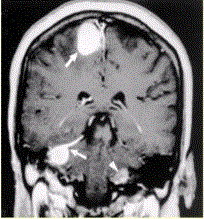 问题 患者男,20岁,头痛、步态不稳。MRI显示如下图。 下图影像学表现可诊断为