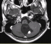 问题 男性,20岁。恶心、呕吐3d,剧烈头痛加重1d入院。MR显示小脑下蚓部长T1、长T2信号影,病变可见结节状明显强化,如下图。 关于该病的描述,错误的是