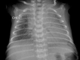问题 早产儿,男,生后12小时,生后8小时出现呼吸困难,如图,最可能的诊断为?(?)