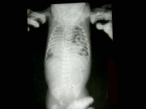 问题 男,15天,进食呕吐5天、呼吸困难2天,如图所示,最可能的诊断为?(?)