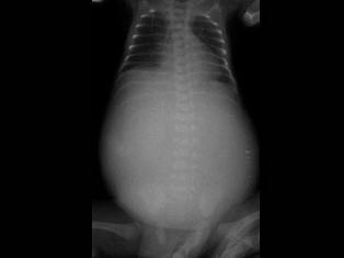 问题 女婴,7月。经常呕吐,腹部饱满、膨隆,消瘦。如图所示,最可能的诊断为?(?)