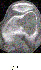 患者女,35岁,左膝关节隐痛1年余,近1周加重,活动后明显疼痛。查体:左股骨下端外侧肿胀,压痛。行左膝关节正侧位CR,并行左膝关节CT扫描,见下图。依...