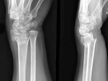 有外伤史,结合图像,最可能诊断是?(?)A.Smith骨折B.尺骨骨折C.未见异常D.Colles骨折E.腕关节脱位