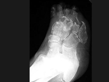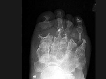 问题 女,78岁,长期慢性手足畸形,无冷热、痛感,结合图像,最可能的诊断是?(?)