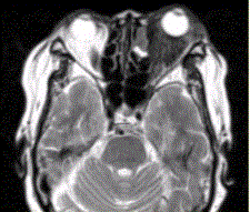 患者女,64岁,左眼突出5年余。查体左眼球前突6mm,眼球运动自如,眼底无异常,下睑扪及边界不清、质软的肿块,视力正常,MR表现如下图。诊为炎...