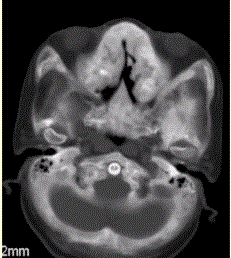 问题 患者女,25岁,左侧面部肿块,突眼10余年。CT表现如下图。 临床拟诊为