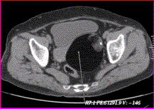 问题 患者女,36岁,CT发现盆腔内囊实性肿块,以囊性为主,含脂肪和钙化(下图),诊断应首先考虑为