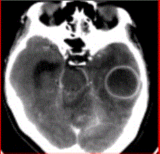 问题 患者女,26岁,头痛、低热10d余,既往有左侧慢性中耳炎病史。CT表现如下图。 关于脑脓肿的诊断要点,不正确的是