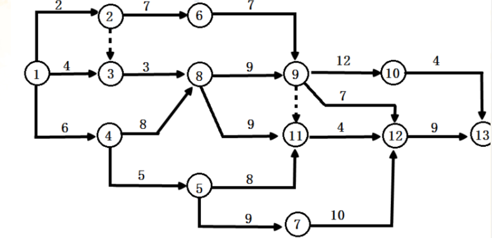 问题 在下面的网络图中,关键线路有( )。