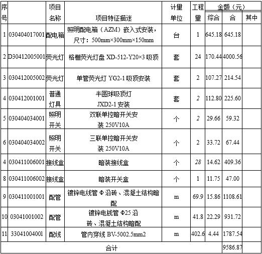 问题 本试题分三个专业(I 土建工程、II 管道和设备工程、III 电气和自动化控制工程),请任选其中一题作答,若选作多题,按所答的第一题(卷面顺序)计分。 (主观题) 工程背景资料如下: (1)图6.Ⅲ所示为某综合楼底层会议室的照明平面图。 说明: 1.照明配电箱AZM电源由本层总配电箱引来。 2.管路为镀锌电线管Ф20或Ф25沿墙、楼板暗配.顶管敷设标高除雨篷为4m外,其余均为5m。管内穿绝缘导线BV-5002.5mm2。管内穿线管径选择:3根线选用Ф20镀锌电线管;4-5根线选用镀锌电线管。所有管路内均带一根专用接地线(PE线)。 3.配管水乎长度见图6-III括号内数字,单位为m。 (2)照明工程的相关定额见下表: (3)该工程的人工单价为80元/工日,管理费和利润分别按人工费的50%和30%计算。 (4)相关分部分项工程量清单项目统一编码见下表: