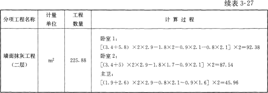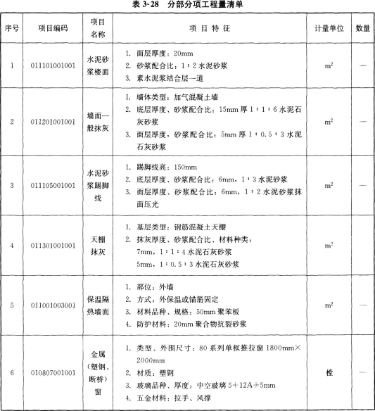 问题 一、某小高层住宅楼建筑部分设计如图3—7和图3—8所示,共12层,每层层高均为3m,电梯机房与楼梯间部分凸出屋面。墙体除注明者外均为200mm厚加气混凝土墙,轴线位于墙中。 外墙采用50mm厚聚苯板保温。楼面做法为20mm厚水泥砂浆抹面压光。楼层钢筋混凝土板厚100mm,内墙做法为20mm厚混合砂浆抹面压光。为简化计算首层建筑面积按标准层建筑面积计算。阳台为全封闭阳台,⑤和⑦轴上混凝土柱超过墙体宽度部分建筑面积忽略不计,门窗洞口尺寸见表3—24,工程做法见表3—25。 问题: 1.计算小高层住宅楼的建筑面积,将计算过程、计量单位及计算结果填入表3—26“建筑面积计算”。 2.计算小高层住宅楼二层卧室1、卧室2、主卫的楼面工程量以及墙面工程量,将计算过程、计量单位及计算结果按要求填入表3—27“分部分项工程量计算”。 3.结合图纸及表3—25“工程做法”进行分部分项工程量清单的项目特征描述,将描述和分项计量单位填入表3—28“分部分项工程量清单”。 (计算结果均保留2位小数)
