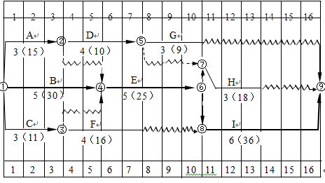 某工程项目业主通过工程量清单招标确定某承包商为中标人,并签订了工程合同,工期为16天。该承包商编制的初始网络进度计划(每天按一个工作班安排作业)如图4.1...