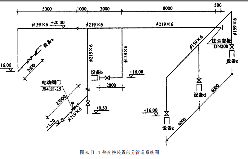 Ⅱ. 管道和设备工程 某一化工生产装置中部分热交换工艺管道系统,如图6.Ⅱ.1 所示。 设计说明 1.某一化工厂生产装置中的部分热交换工...