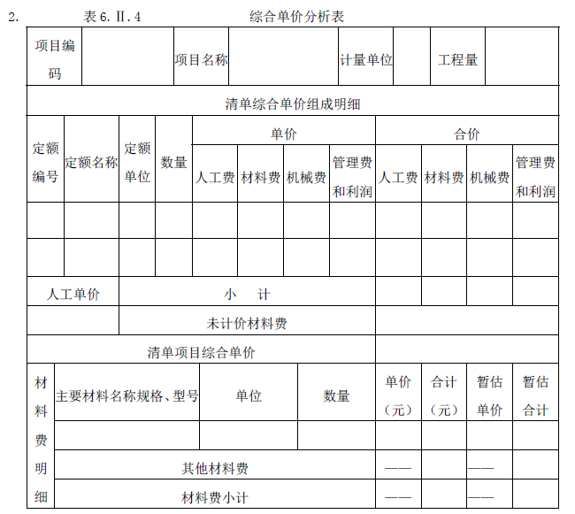 解析 答案:1. 6.Ⅱ.2 分部分项工程量清单