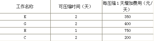 解析 【1】从工期控制的角度,先施工工作J,后施工工作F较合理。因为根据约束条件,可有两个备选方案:方案1是先工作J后工作F计算的工期为21天;方案2是先工作F后工作J计算的工期为22天,方案1较合理。 调整结果绘制成新网络图,如图2所示。 调整后的关键线路有两条,关键工作有:A、E、F、G、H、I、J,工期为21天。 【2】由于工作I的时间延误,使工作J的开始作业时间推迟3天,由于是关键工作,则该工程的总工期将为21+3=24(天);综合费用增加:500×3+700×3=3600(元)。 【3】工作J已经推迟3天情况后从经济角度: ①首先压缩G工作1天, 增加的综合费用变为500×3+400+700×2=3300(元) ②其次再同时压缩G工作和C工作各1天, 增加的综合费用变为500×3+400×2+200+700=3200(元) ③由于压缩H工作1天增加的费用750元大于延长1天罚款700元,从经济角度考虑,不再压缩。 结论:压缩G工作2天;压缩C工作1天,总工期22天,增加的综合费用为3200元。