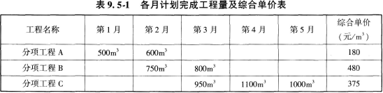 某工程项目由A、B、C三个分项工程组成,采用工程量清单招标确定中标人,合同工期5个月。各月计划完成工程量及综合单价见表9.5-1。承包合同规定: (...