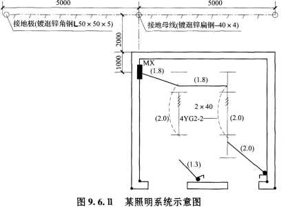 某照明系统如图9.6.Ⅱ,工程相关定额费用和清单编码如表9.6.Ⅱ-1、表9.6.Ⅱ-2。 接地母线定额用量增加系数为3.9%,母线主材损耗率5%,接地...