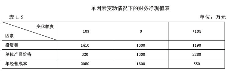问题 拟建某工业性生产项目,建设期为2年,运营期为6年。基础数据如下: (1)固定资产投资估算额为2200万元(含建设期贷款利息80万元,不含可抵扣的进项税额),其中:预计形成固定资产2080万元,无形资产120万元。固定资产使用年限为8年,残值率为5%,按平均年限法计算折旧。在运营期末回收固定资产余值。无形资产在运营期内均匀摊入成本。 (2)本项目固定资产投资中自有资金为520万元,固定资产投资资金来源为贷款和自有资金。建设期贷款发生在第2年,贷款年利率10%,还款方式为在运营期内等额偿还本息。 (3)流动资金800万元(运营期第一年借了500万,资本金投入200万;第二年借了100万),在项目计算期末回收。流动资金贷款利率为3%,还款方式为运营期内每年末只还所欠利息,项目期末偿还本金。 (4)项目投产即达产,设计生产能力为100万件,预计产品售价为30元/件(不含税),增值税税率为17%,增值税附加的税率为6%,企业所得税税率为15%。按照设计生产能力预计的年经营成本为1700万元(不含可抵扣的进项税额),可抵扣的进项税额为210万。 (5)经营成本的2%计入固定成本(另:折旧费、摊销费、利息支出均应计入固定成本)。 (6)行业的总投资收益率为20%,行业资本金净利润率为25%。 问题: 1.计算该项目发生建设期贷款的数额。 2.填写项目建设期借款还本付息计划表。 3.编制项目的总成本费用估算表(不含可抵扣的进项税额)。 4.计算项目的盈亏平衡产量和盈亏平衡单价,对项目进行盈亏平衡分析(单位产品可抵扣的进项税额为2.1元/件)。 5.计算运营期第一年净利润、息税前利润和息税折旧摊销前利润(法定盈余公积金按净利润的10%提取,其他分配不考虑),并计算运营期第一年的总投资收益率、项目资本金净利润率。 6.计算运营期第一年项目资本金现金流量表中的净现金流量. 7.项目的投资额、单位产品价格和年经营成本在初始值的基础上分别变动±10%时对应的财务净现值的计算结果见表1.2。根据该表的数据列式计算各因素的敏感度系数,并对3个因素的敏感性进行排序。根据表中的数据绘制单因素敏感性分析图,列式计算并在图中标出单位产品价格的临界点。(计算结果均保留两位小数) 注:计算结果保留小数点后2 位。