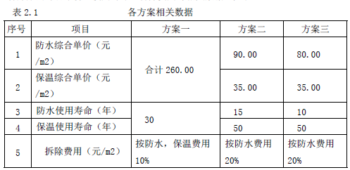 【背景资料】某设计单位为拟建工业厂房提供三种屋面防水保温工程设计方案,供业主选 择。 方案一:硬泡聚氨酯防水保温材料(防水保温二合一); 方案二:三...