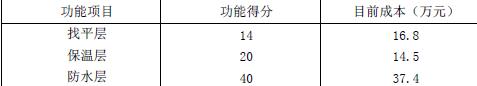 问题 【背景资料】某设计单位为拟建工业厂房提供三种屋面防水保温工程设计方案,供业主选 择。 方案一:硬泡聚氨酯防水保温材料(防水保温二合一); 方案二:三元乙丙橡胶卷材加陶粒混凝土; 方案三:SBS 改性沥青卷材加陶粒混凝土。 三种方案的综合单价、使用寿命、拆除费用等相关数据,见表2.1。 拟建工业厂房的使用寿命为50 年,不考虑50 年后其拆除费用及残值,不考虑物价变动因素。基准折现率为8%。 问题: 1.分别列式计算拟建工业厂房寿命期内屋面防水保温工程各方案综合单价现值。用现值比较法确定屋面防水保温工程经济最优方案。(计算结果保留两位小数) 2.专家准备用价值工程对三个方案进行比选,简述价值工程的目标、核心工作是什么?提高产品价值的途径有哪些? 3.利用下表和价值工程原理选择最优方案。 4.为控制工程造价和降低费用,造价工程师对选定的屋面防水保温工程方案以3 个功能层为对象进行价值工程分析。各功能项目得分及其目前成本,见表2.3。 表2.3 功能项目得分及其目前成本表 根据价值工程原理列式计算各功能项目的目标成本。