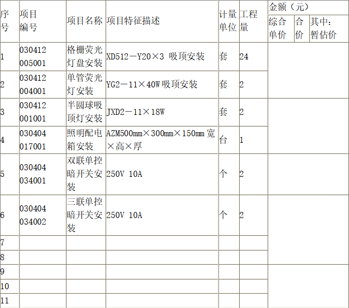 工程背景资料如下: (1) 图6.Ⅲ所示为某综合楼底层会议室的照明平面图。 (2)照明工程的相关定额见下表 (3)该工程的人工费单位为8...