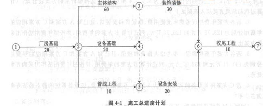 问题 某工业项目,业主采用工程量清单招标方式确定了承包商,并与承包商按照《建设工程施工合同(示范文本)》签订了工程施工合同。施工合同约定:项目生产设备由业主购买;开工日期为6月1日,合同工期为120天;工期每提前(或拖后)1天,奖励(或罚款)1万元(含规费、税金)。 工程项目开工前,承包商编制了施工总进度计划,如图4-1所示(时间单位:天),并得到监理人的批准。 工程项目施工过程中,发生了如下事件。 事件1:厂房基础施工时,地基局部存在软弱土层,因等待地基处理方案导致承包商窝工60个工日、自有机械闲置4个台班(台班费为1200元/台班,台班折旧费为700元/台班);地基处理产生人材机费用6000元;基础工程量增加50m3(综合单价:420元/m3)。共造成厂房基础作业时间延长6天。 事件2:7月10日~7月11日,用于主体结构的施工机械出现故障;7月12日~7月13日该地区供电全面中断。施工机械故障和供电中断导致主体结构工程停工4天、30名工人窝工4天,一台租赁机械闲置4天(每天l个台班,机械租赁费1500元/天),其他作业未受到影响。 事件3:在装饰装修和设备安装施工过程中,因遭遇台风侵袭,导致进场的部分生产设备和承包商采购尚未安装的门窗损坏,承包商窝工36个工日。业主调换生产设备费用为1.8万元,承包商重新购置门窗的费用为7000元,作业时间均延长2天。 事件4:鉴于工期拖延较多,征得监理人同意后,承包商在设备安装作业完成后将收尾工程提前,与装饰装修作业搭接5天,并采取加快施工措施使收尾工作作业时间缩短2天,发生赶工措施费用8000元。 (假设上述人材机的费用中均不含可抵扣的进项税额) 【问题】 1.分别说明承包商能否就上述事件1~事件4向业主提出工期和(或)费用索赔,并说明理由。 2.承包商在事件1~事件4中得到的工期索赔各为多少天?工期索赔共计多少天?该工程的实际工期为多少天?工期奖(罚)款为多少万元? 3.如果该工程人工工资标准为120元/工日,窝工补偿标准为40元/工日。工程的管理费和利润为人材机费用之和的15%(其中现场管理费为4%),规费和增值税为15.8%,窝工与机械闲置费用补偿只取规费和增值税,不考虑管理费和利润的补偿。分别计算承包商在事件l~事件4中得到的费用索赔各为多少元?费用索赔总额为多少元?(费用以元为单位,计算结果保留两位小数)