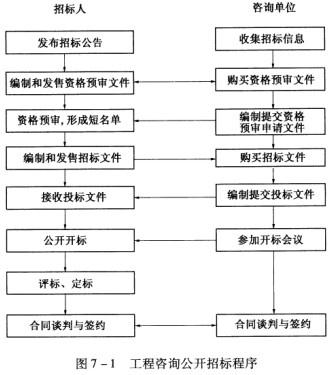 解析 以公开招标方式选择咨询单位的程序如图7-1所示。