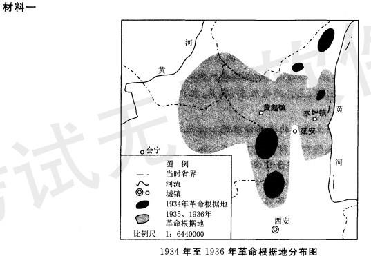 材料二 1935年10月,中共中央率领中国工农红军第一方面军长征到达陕北后,陕甘苏区得到巩 固与发展。1937年3月,中国共产党为团结抗日,经与国...
