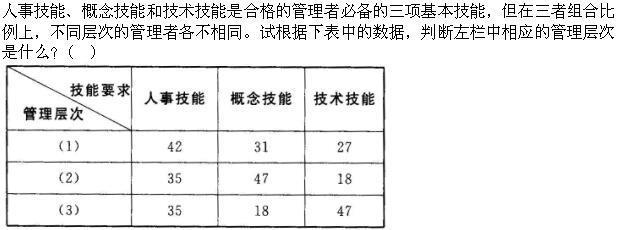 选项 A.(1)基层;(2)中层;(3)高层 B.(1)高层;(2)中层;(3)基层 C.(1)中层;(2)高层;(3)基层 D.(1)基层;(2)高层;(3)中层