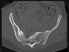 男,56岁,右髋部疼痛,结合图像,最可能的诊断是 ( )A、骨转移瘤B、类风湿关节炎C、骶髂关节结核D、强直性脊柱炎E、骶髂关节炎